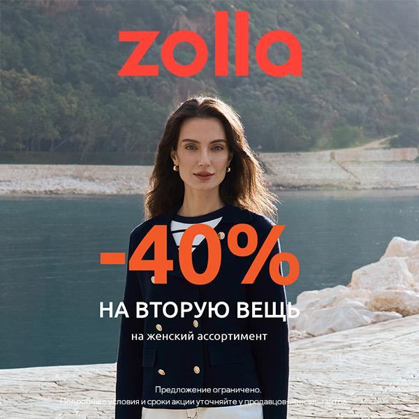 Выгодное предложение от Zolla! Скидка −40% на вторую вещь на женский ассортимент! Количество товара ограничено. Подробности и сроки акции уточняйте у продавцов-консультантов отдела.
